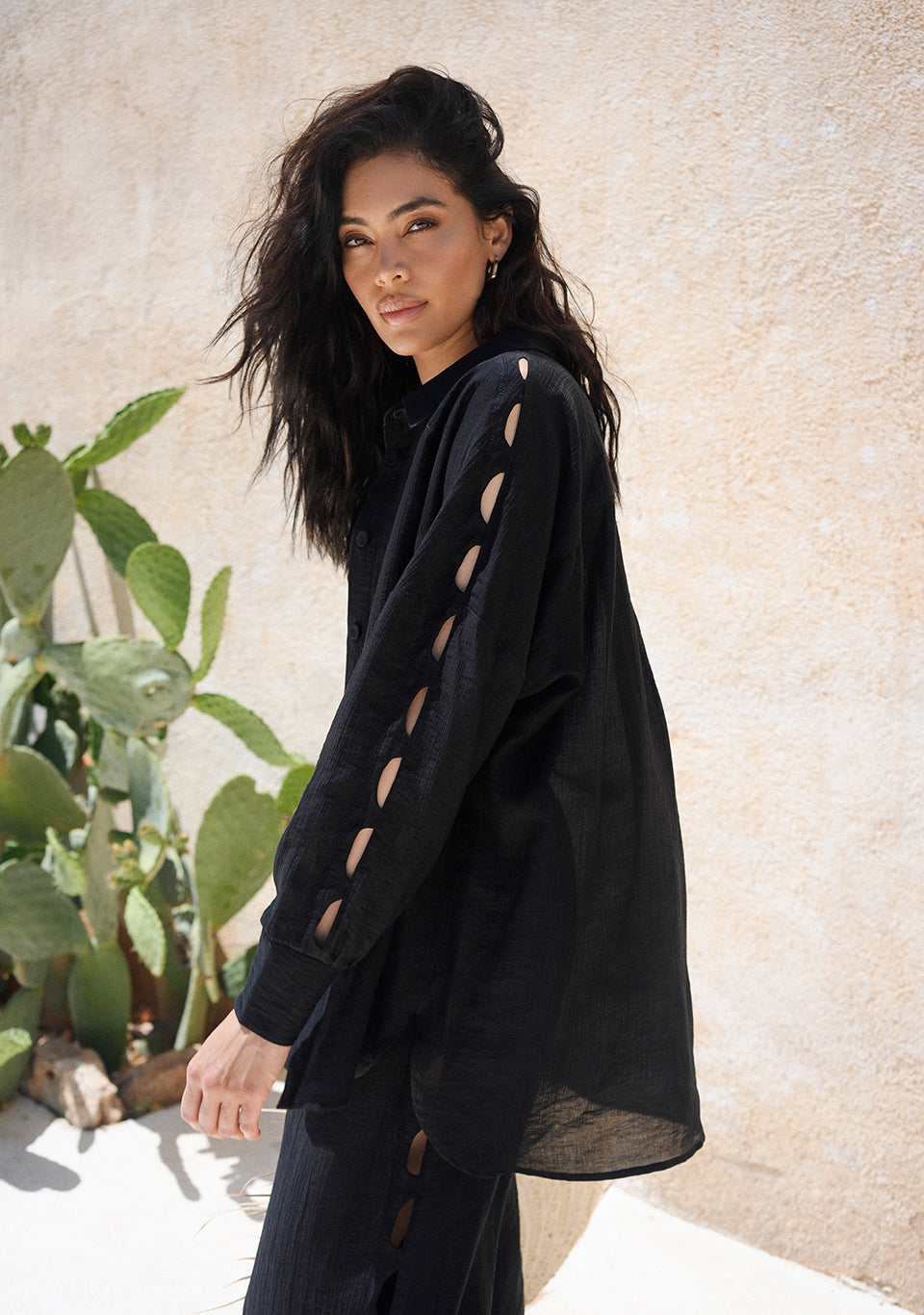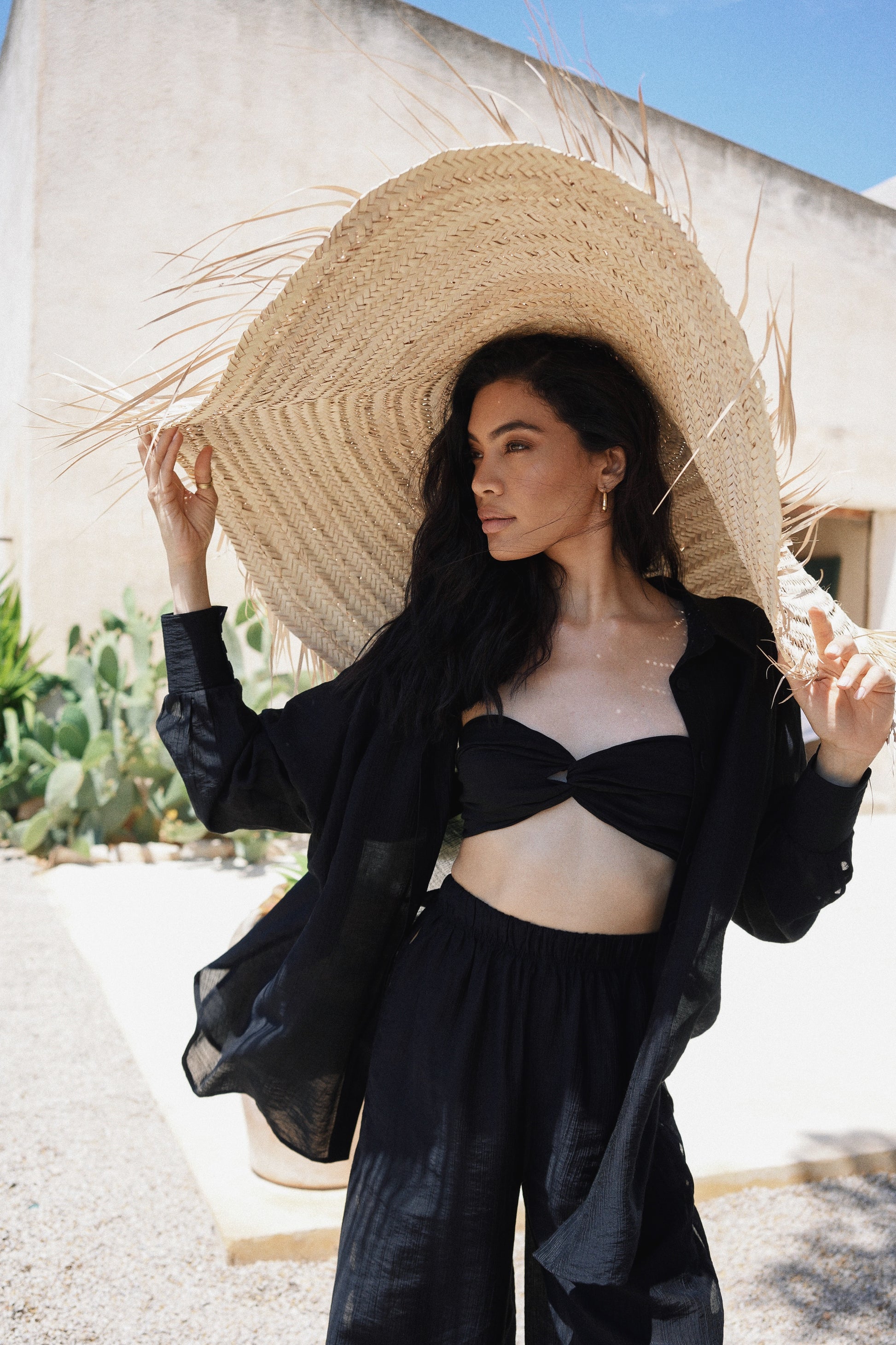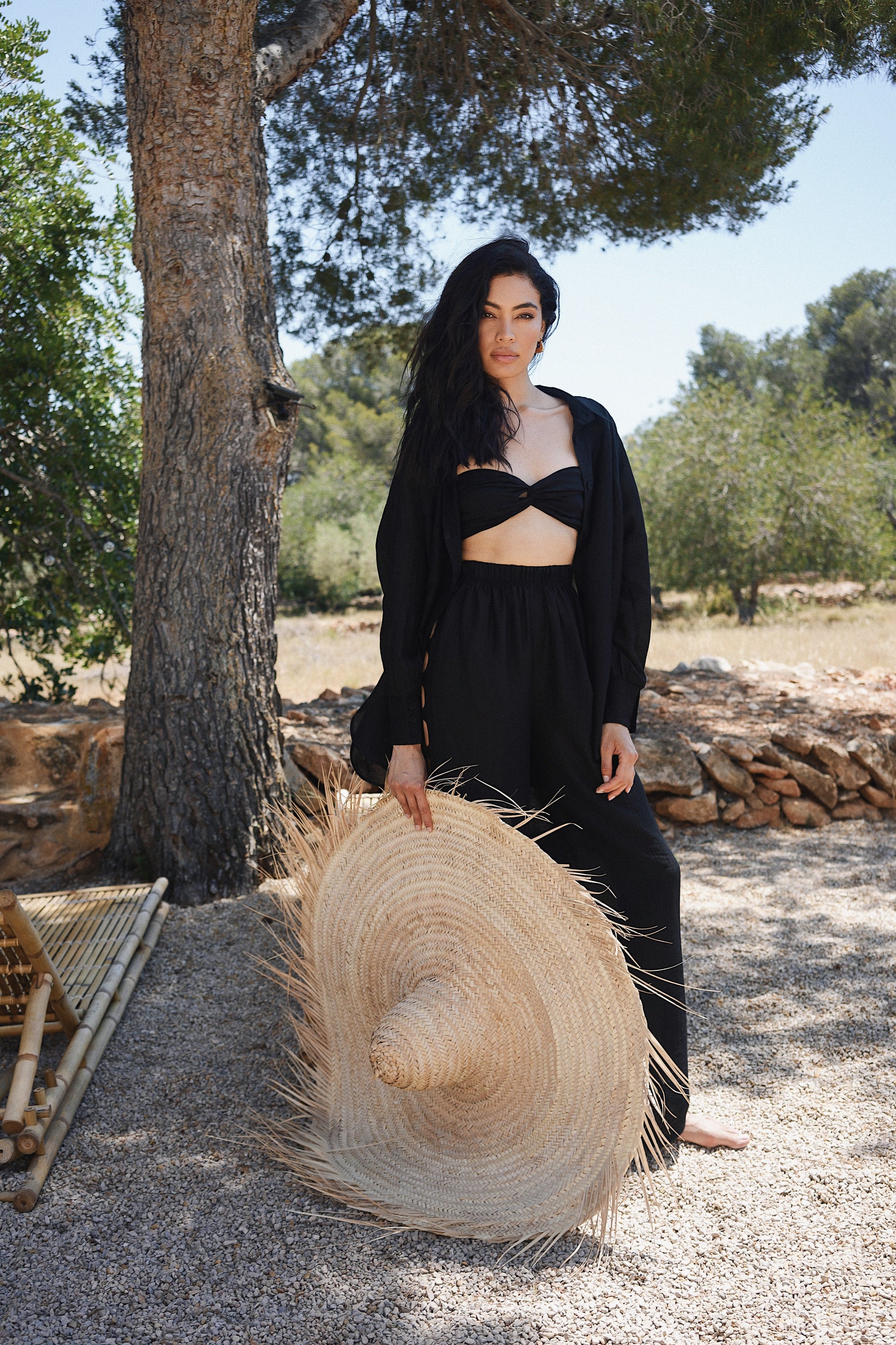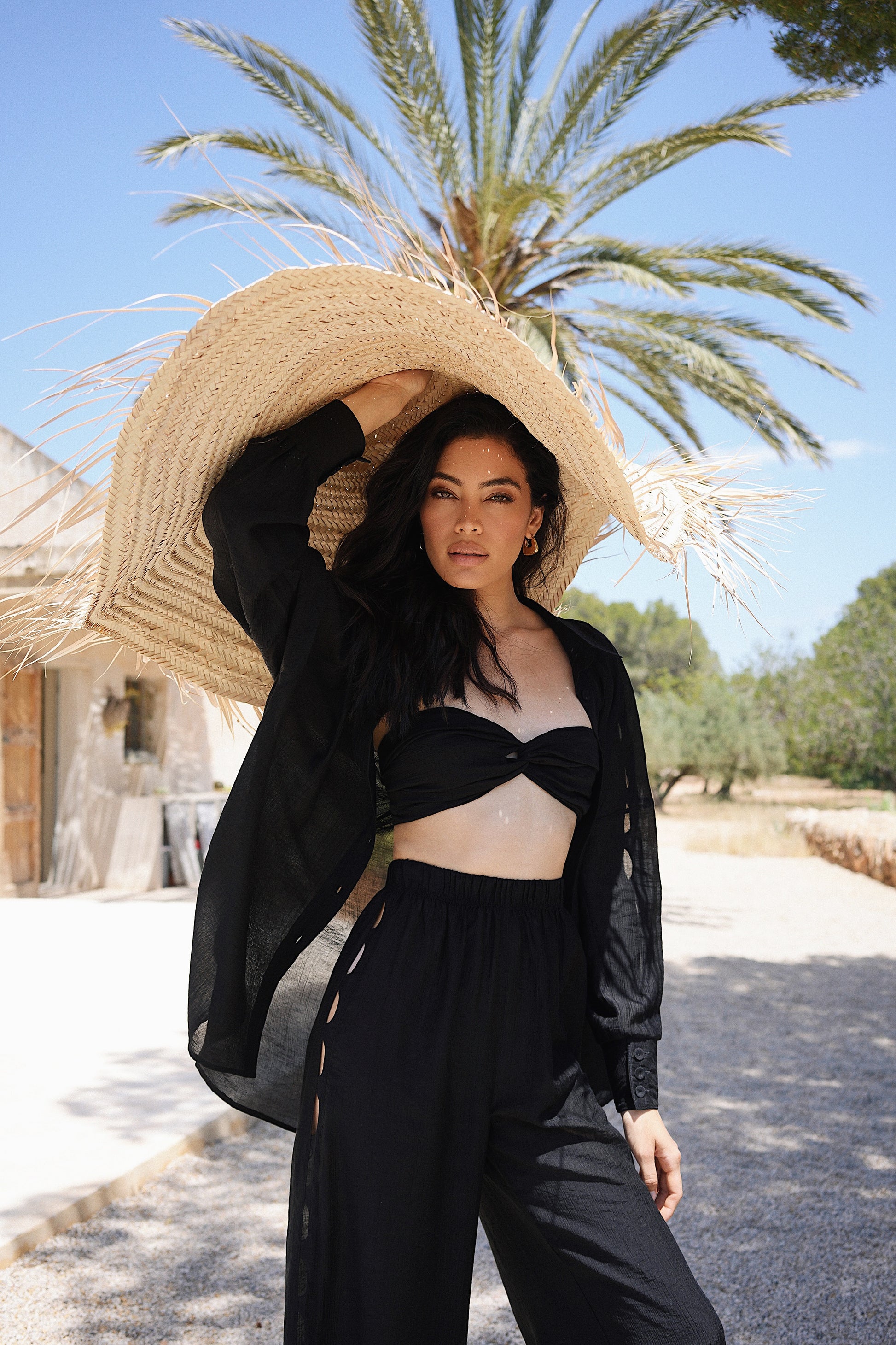 Un traje decorado con un diseño inusual y, debido a su corte suelto, te dará una sensación de libertad y comodidad. El top, los pantalones y la camisa se pueden combinar entre sí, creando muchos looks de viaje.