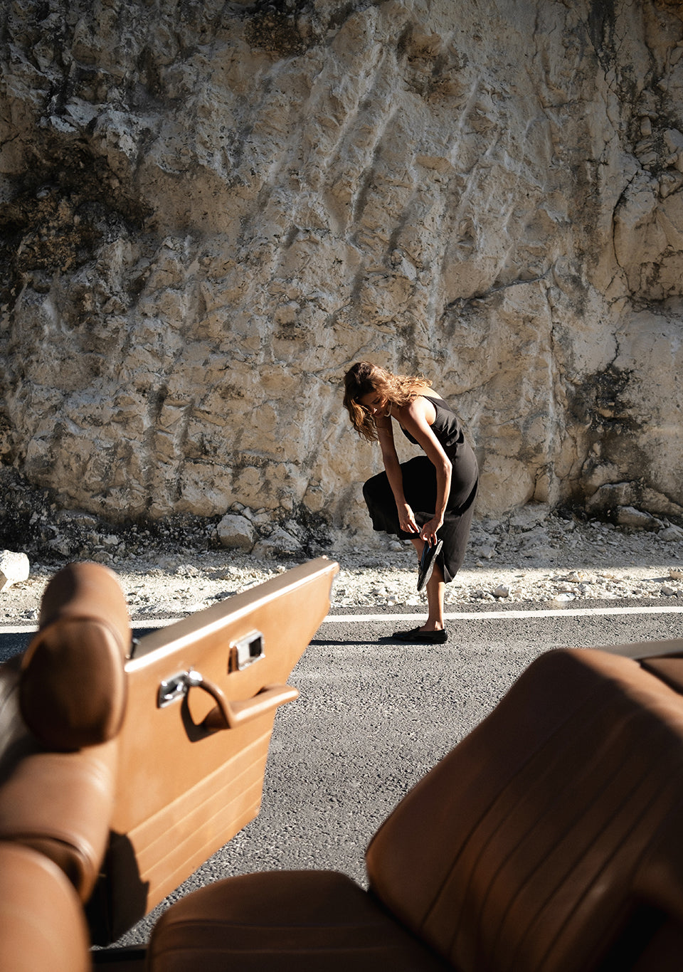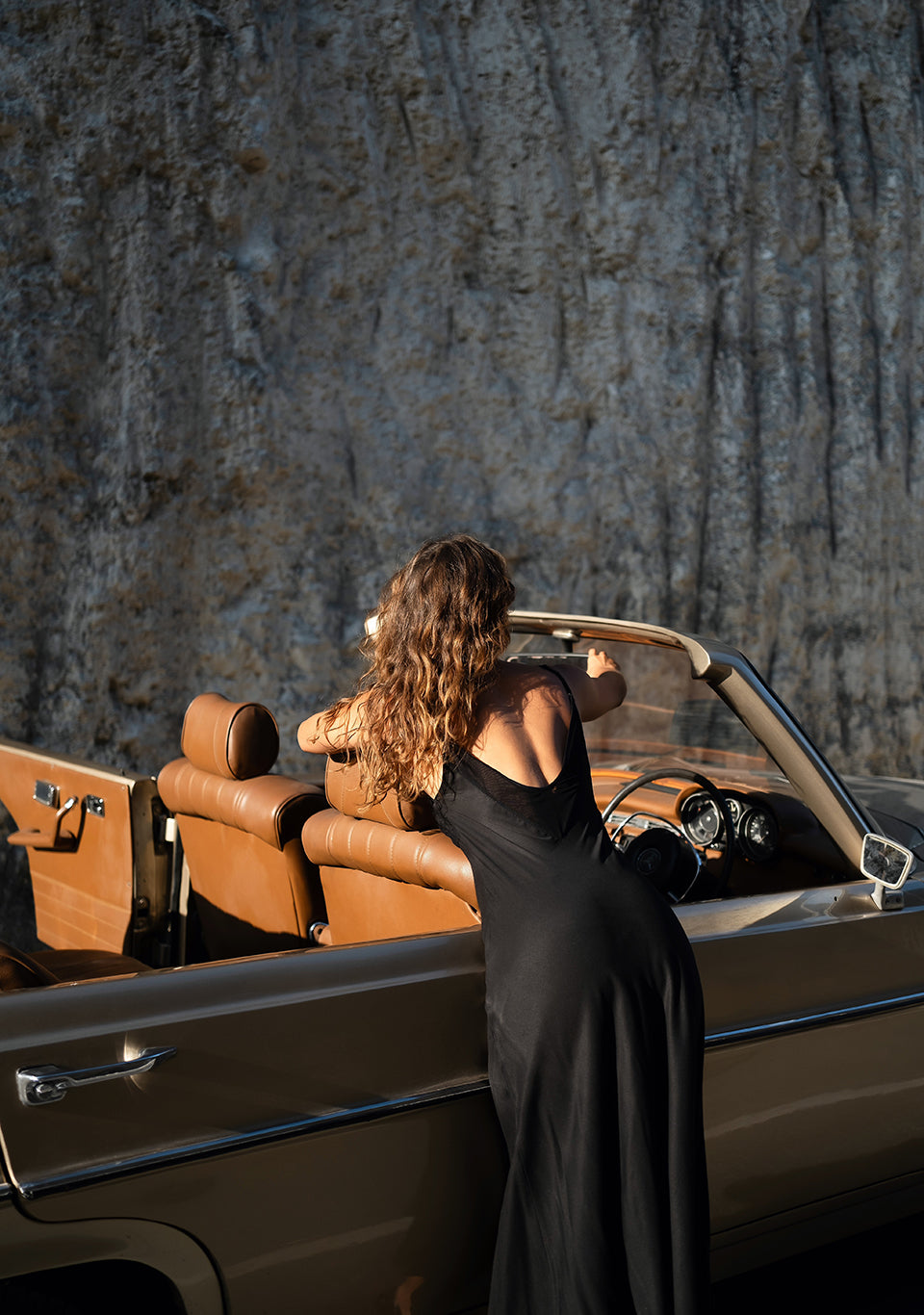 The soft, flowing fabric creates an elegant silhouette, making it perfect for an evening look.