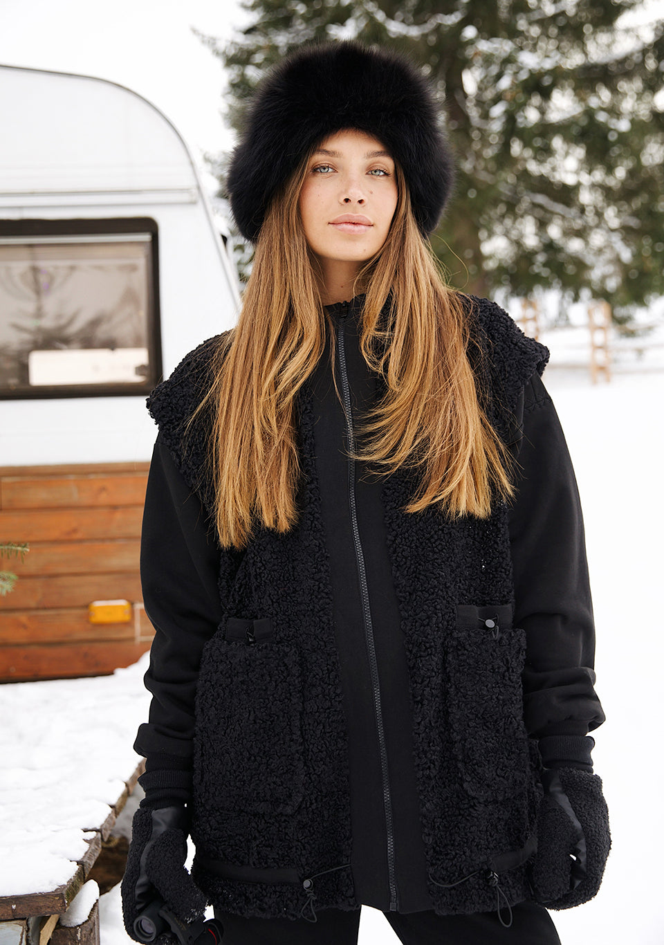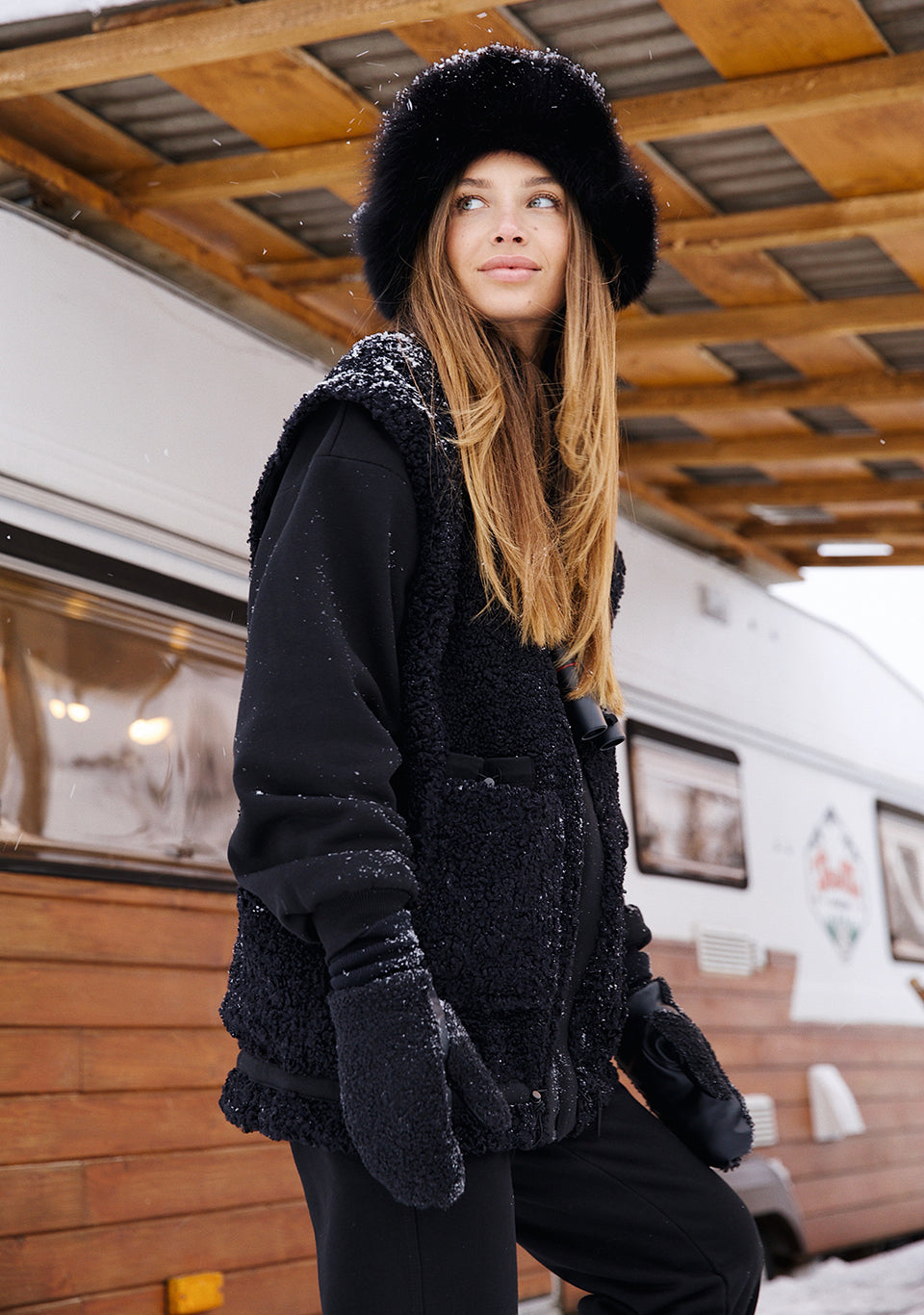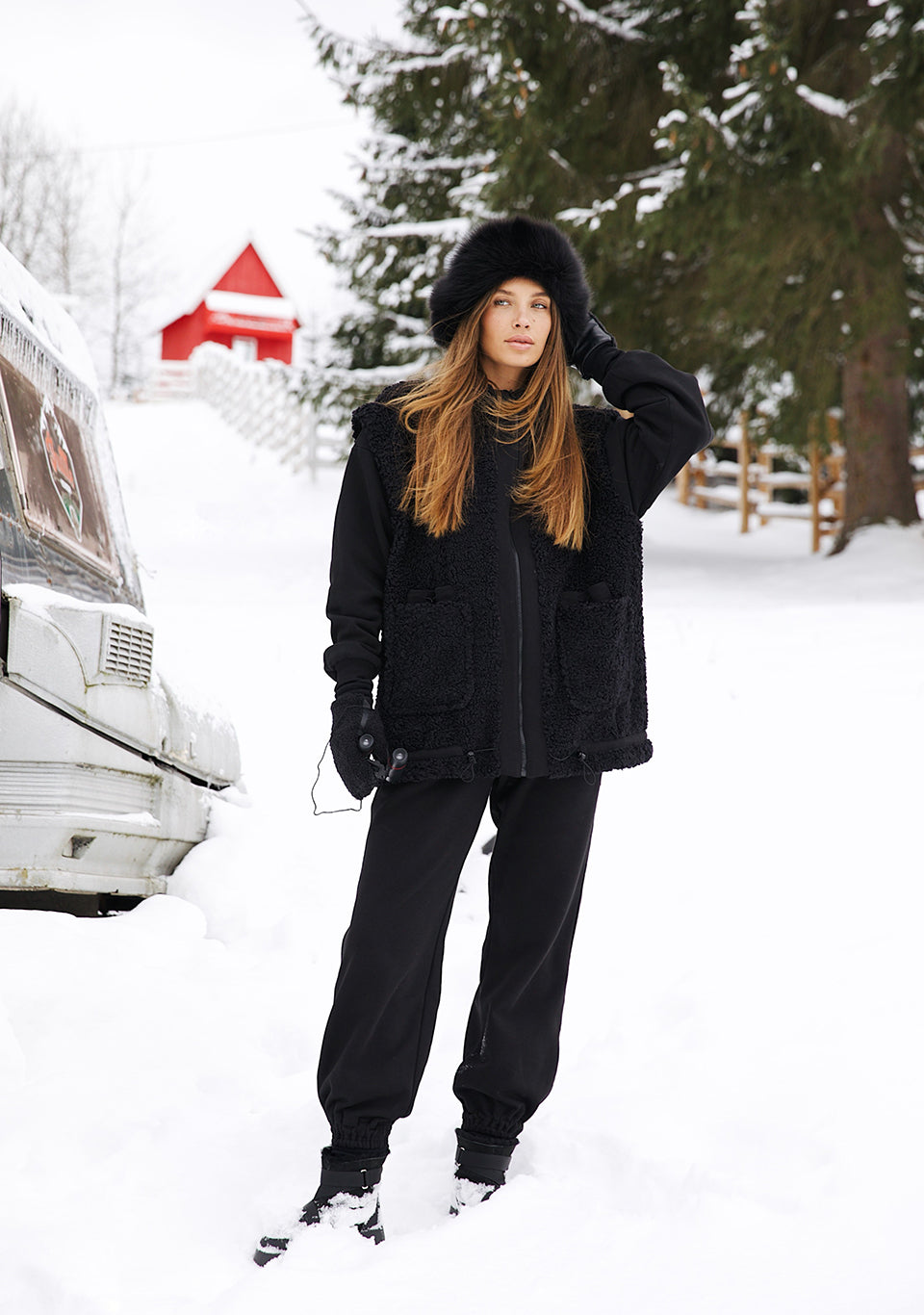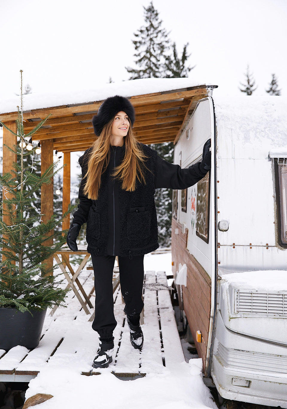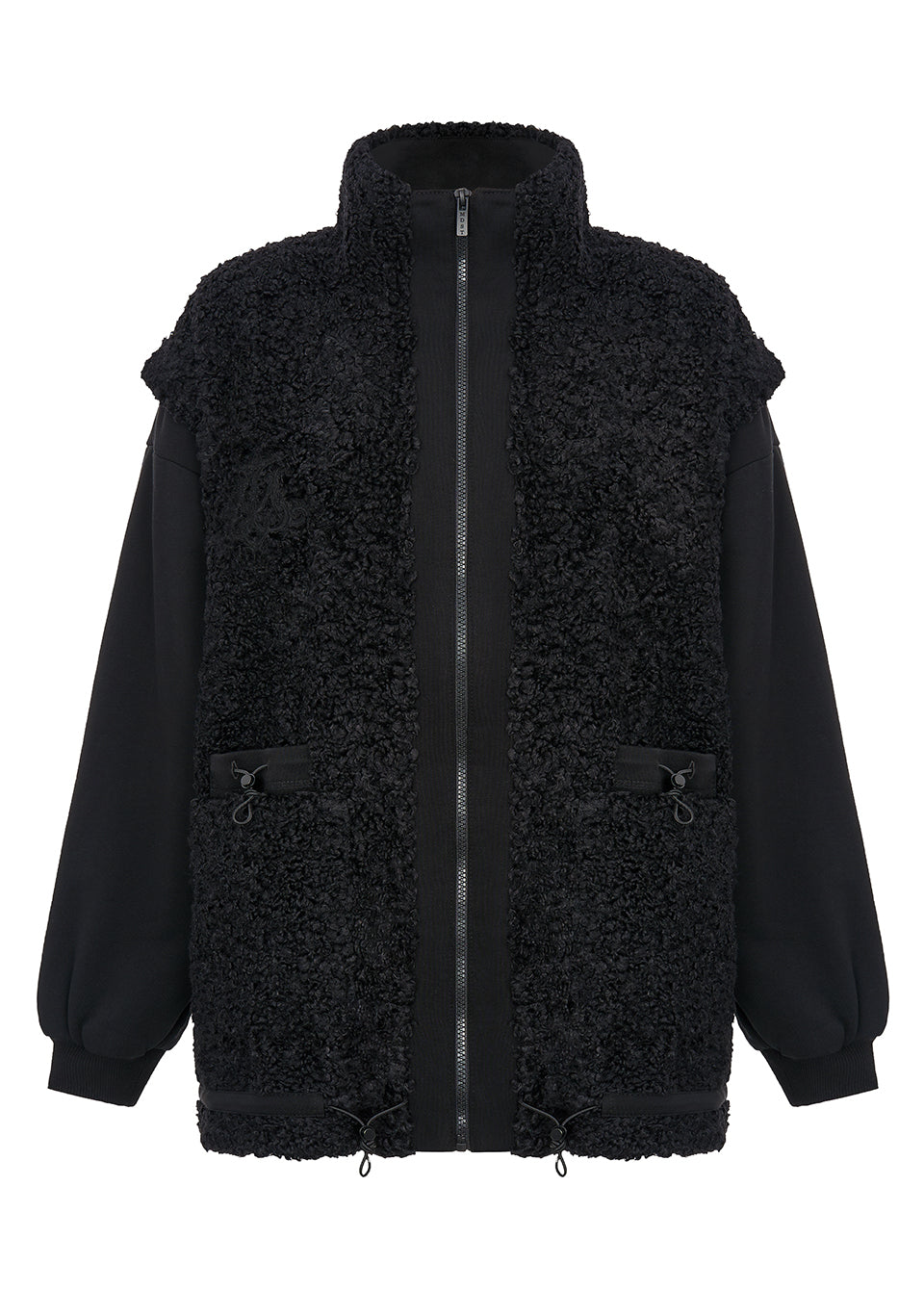 Lined winter jacket with convenient pockets and bouclé inserts.