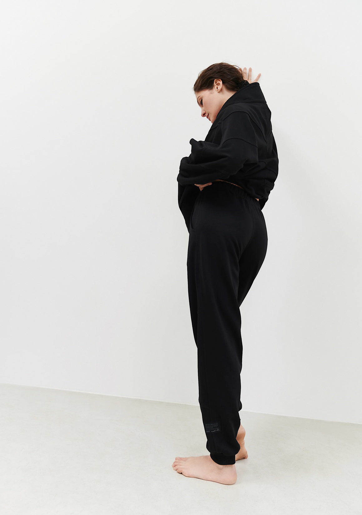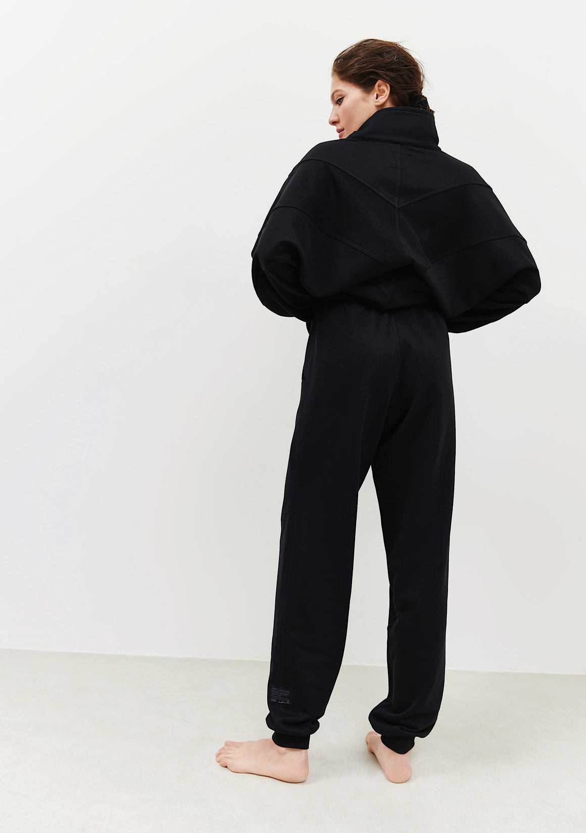 These wedge sweatpants feature a hem at the leg warmers. They have a drawstring waist.
