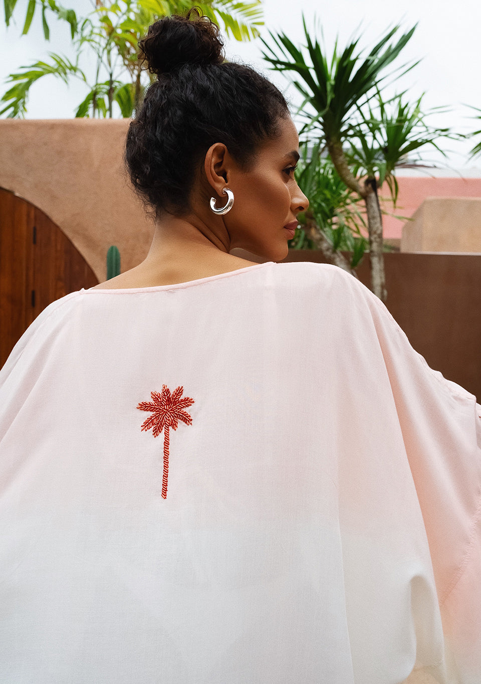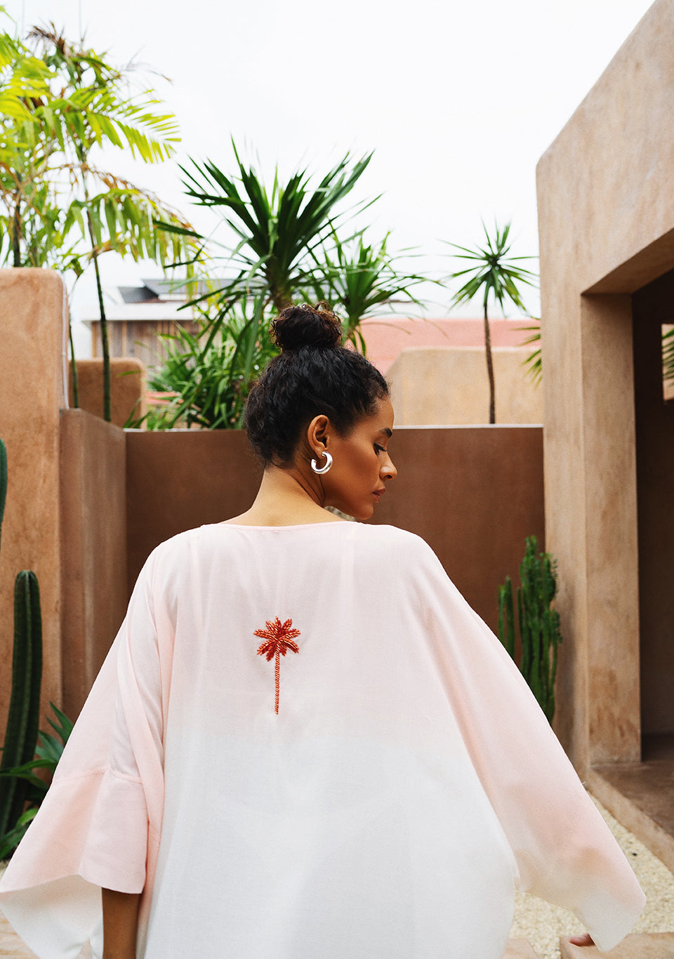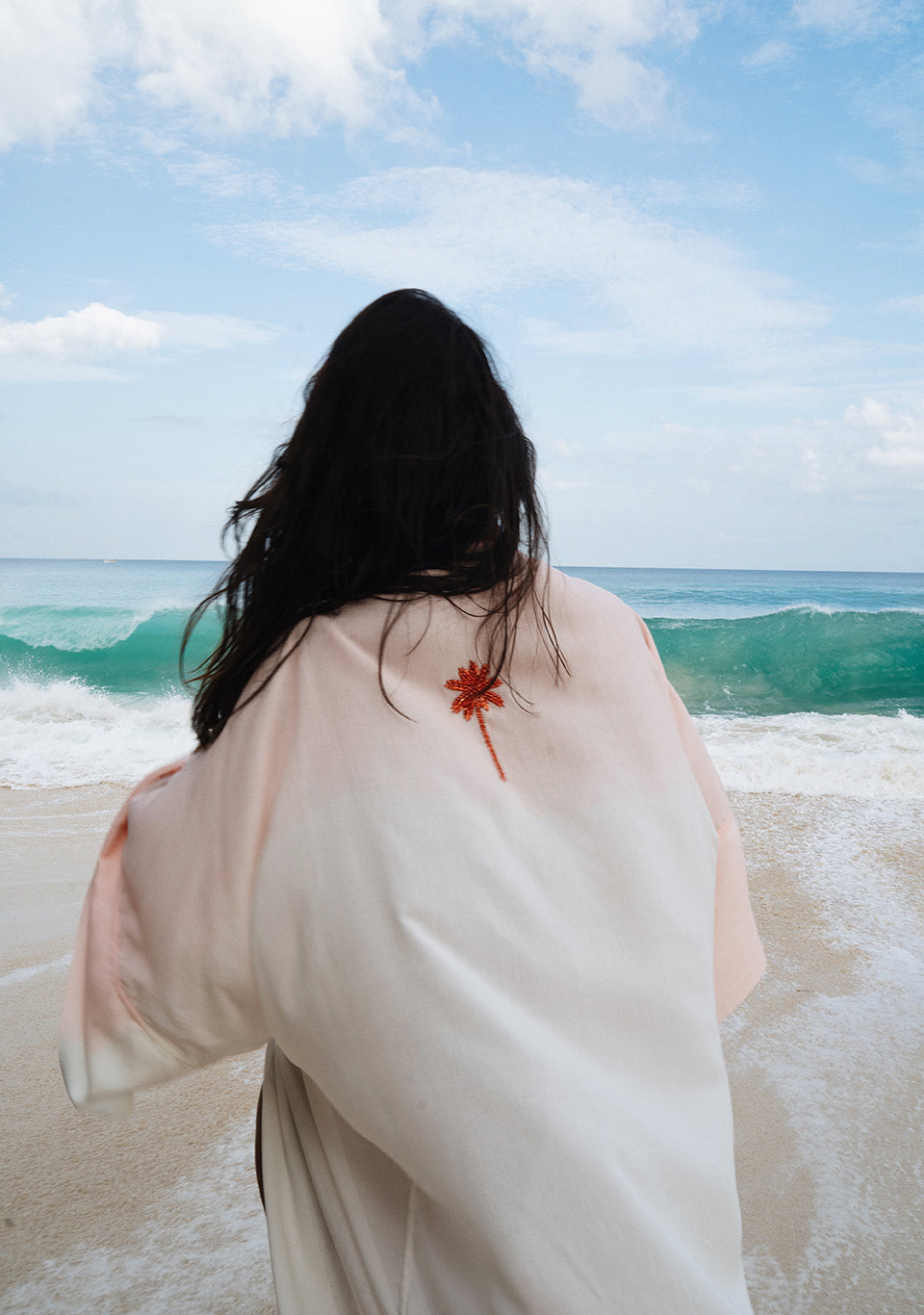 La túnica está decorada con una palmera tropical y nuestras características cruces, que están bordadas a mano con cuentas.