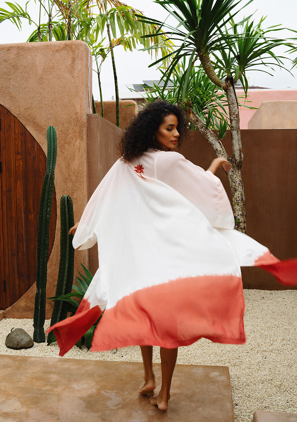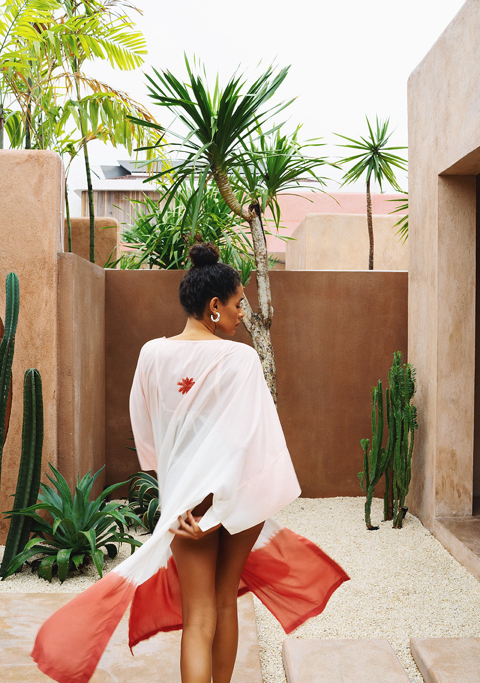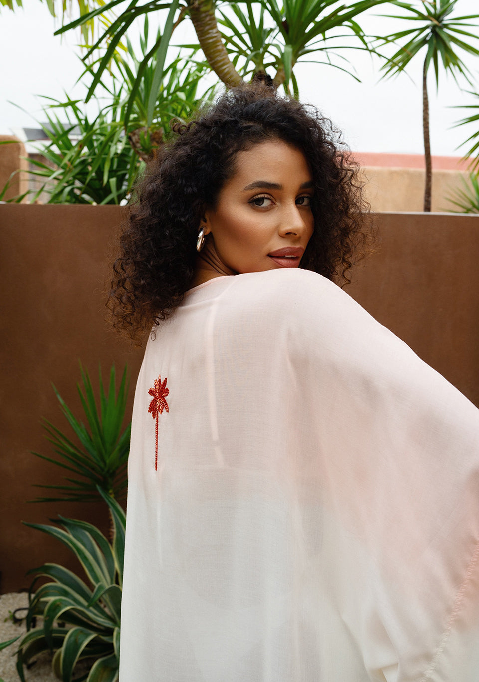 La túnica está decorada con una palmera tropical y nuestras características cruces, que están bordadas a mano con cuentas.